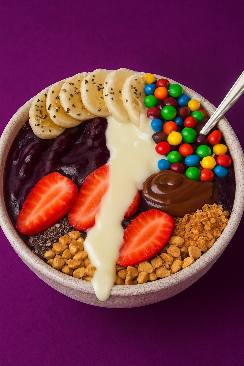 Açaí 700ml: gigante e irresistível (5 acompanhamentos · 1 fruta · 1 cobertura)