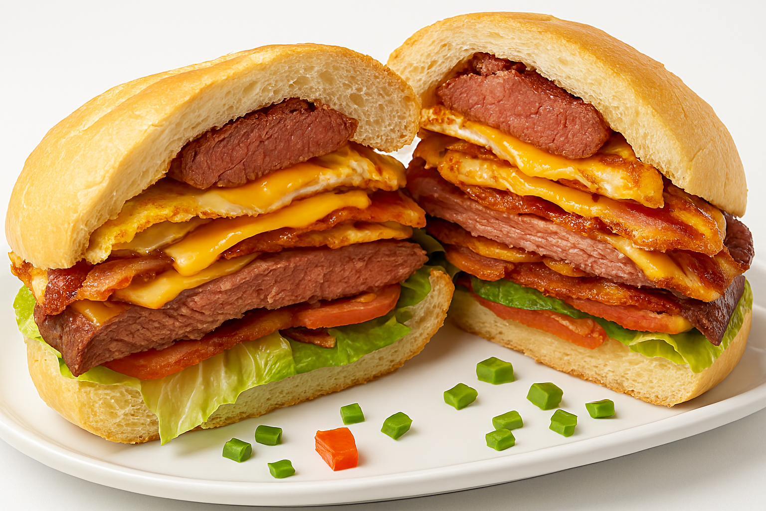 Ingredientes: Pão | Filé de Alcatra | Ovo | Queijo | Presunto | Ervilha...